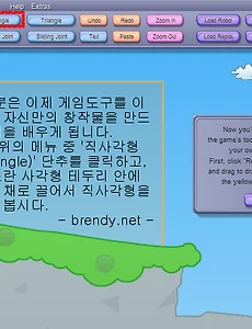 ICT208 [도전과제] 덤프(Dump) / incredibots.com 덤프(Dump)는 http://www.incredifriends.com 의 첫 번째 도전과제입니다. 이번 과제는 아래 그림에서 오른쪽에 있는 도형들을 왼쪽 구덩이로 모두 옮기는 것이 목표입니다. 5분내로 작업을 마쳐서 다시보기(Replay) 영상을 저장할 수 있도록 합시다. 2009. 8. 30. [도전과제] 고기잡기(Fish) / incredibots.com 고기잡기(Fish)는 http://www.incredifriends.com 의 세 번째 도전과제입니다. 고기잡기는 작은 공들과 섞여 있는 물고기 모형을 잡아 왼쪽의 웅덩이로 옮기면 임무를 완수하게 되는 과제입니다. 2009. 8. 30. [기본기능 익히기] Level 6 : catapult (투석기) http://www.incredifriends.com 로봇을 만들어 볼수 있는 신기한 사이트입니다. (먼저 게임에서 문제 해결을 시도해 본 다음에 문제가 해결이 안 되면 아래의 글과 그림을 읽어보시기 바랍니다. 재미를 위해...) ----------------------------------------------------- Level 6 에서는 catapult (투석기) 만드는 법을 배우는 단계입니다. 2009. 8. 29. [기본기능 익히기] Level 5 : DumpBot (덤프로봇) http://www.incredifriends.com 로봇을 만들어 볼수 있는 신기한 사이트입니다. ----------------------------------------------------- 이번 기본 과정은 http://incredibots.com의 5번째 단계의 기능 익히기 과정입니다. 이번에 배우는 로봇은 DumpBot으로 물체를 퍼 올리는 덤프트럭이라고 생각하시면 간단합니다. 1. 몸체 만들기 이번에는 덤프로봇(물건을 들어 나르는 로봇)을 만들어봅시다. 먼저, 차의 몸체를 만들기 위해 직사각형(rectangle)을 그려봅시다. 아래의 그림과 비슷한 크기로 만들어봅시다. 만약 너무 큰 직사각형을 그리면, 나중에 모터가 작동하는데 많은 문제가 생깁니다. (왜냐하면 도형이 클 수록 무게가 많은 것.. 2009. 8. 29. [기본기능 익히기] Level 4 : JumpBot (점프로봇) http://www.incredifriends.com 로봇을 만들어 볼수 있는 신기한 사이트입니다. (먼저 게임에서 문제 해결을 시도해 본 다음에 문제가 해결이 안 되면 아래의 글과 그림을 읽어보시기 바랍니다. 재미를 위해...) ----------------------------------------------------- 이번에는 점프 기능을 가지고 있는 부속품을 이용하여, 점프로봇을 만들게 됩니다. 1. 이번에는 점프봇이라는 것을 만들어 오른쪽의 절벽을 뛰어넘어야 합니다. 'Sliding Joint'라는 녀석은 피스톤과 같은 동작을 하게 됩니다. 위의 'Sliding Joint' 메뉴를 클릭한 후 아래의 초록색 삼각형과 빨간색 자동차 몸체를 차례로 클릭하세요. 2. 그럼 만들어진 'Sliding J.. 2009. 8. 29. [기본기능 익히기] Level 3 : Car creation.(자동차 만들기) http://www.incredifriends.com 로봇을 만들어 볼수 있는 신기한 사이트입니다. (먼저 게임에서 문제 해결을 시도해 본 다음에 문제가 해결이 안 되면 아래의 글과 그림을 읽어보시기 바랍니다. 재미를 위해...) ----------------------------------------------------- 1. 2. 3. 4. 5. 6. 7. 2009. 8. 29. [기본기능 익히기] Level 2 : Shape up (여러 도형 만들기) http://www.incredifriends.com 로봇을 만들어 볼수 있는 신기한 사이트입니다. (먼저 게임에서 문제 해결을 시도해 본 다음에 문제가 해결이 안 되면 아래의 글과 그림을 읽어보시기 바랍니다. 재미를 위해...) ----------------------------------------------------- 이번 단계는 로봇을 만들기 위한 기본 도형들(사각형,삼각형,원)을 만들어보고, 그 중 원을 굴려서 목표 지접에 넣어보게 됩니다. 아래 그림을 순서대로 잘 살펴봅시다. 2009. 8. 29. [기본기능 익히기] Level 1 : Drive a Tank! http://www.incredifriends.com 로봇을 만들어 볼수 있는 신기한 사이트입니다. (먼저 게임에서 문제 해결을 시도해 본 다음에 해결이 안 되면 아래의 글과 그림을 읽어보시기 바랍니다. 재미를 위해...) 1. 첫번째 연습단계는 만들어져 있는 로봇을 조종해 보는 것입니다. 2. 아래에 보이는 왼쪽 구덩이에 파란 사각형을 집어넣으면 됩니다. 3. 그러면 아래의 '연습과제' 항목 중 첫번째 단계가 통과되었다고 체크 표시가 됩니다. 그러나 저 기록은 현재 컴퓨터에만 남을 뿐 다른 컴퓨터에서는 기록되지 않습니다. 단 아래의 '도전과제(Challenges)'과정에서 자신이 만든 로봇이나 플래이 과정 영상은 로그인 후 저장할 수 있고, 다른 사람에게도 공유하여 보여줄 수 있습니다. 2009. 8. 29. Incredibots 2 가 나왔습니다. 제가 좋아하는 게임 중의 하나인 incredibots (http://incredibots.com)이 버전업 되어 incredibots2 (http://incredibots2.com)가 나왔습니다. 이 게임은 간단한 평면도형을 그려서 연결하여 만든 자동차 또는 로봇을 이용하여 여러 가지 문제를 해결하는 게임입니다. 이 게임의 메뉴를 간단히 설명하자면, 1. 로그인(Log in) - 로그인을 해야 자기가 만든 로봇을 저장하거나, 문제 해결과정 동영상을 저장하거나 불러올 수 있습니다. 2. 훈련모드(Tutorial Levels) - 이 게임의 기능을 익히기 위해 만들어진 14단계 단계의 연습 문제입니다. 영어로 설명되어서 초등학생들은 좀 어려울 수도 있겠습니다만, 저희반 아이들에게 시켜보니 대충 짐작으로 해결.. 2009. 8. 7. 구글 애드센스에서 수표를 보내줬는데...그 다음에는? 우편함에 보니 구글에서 국제우편으로 수표를 보내왔습니다. 만세~!!! 그 동안 애드센스 코드를 이리 저리 붙였다가 지웠다가를 몇 번이나 반복했는